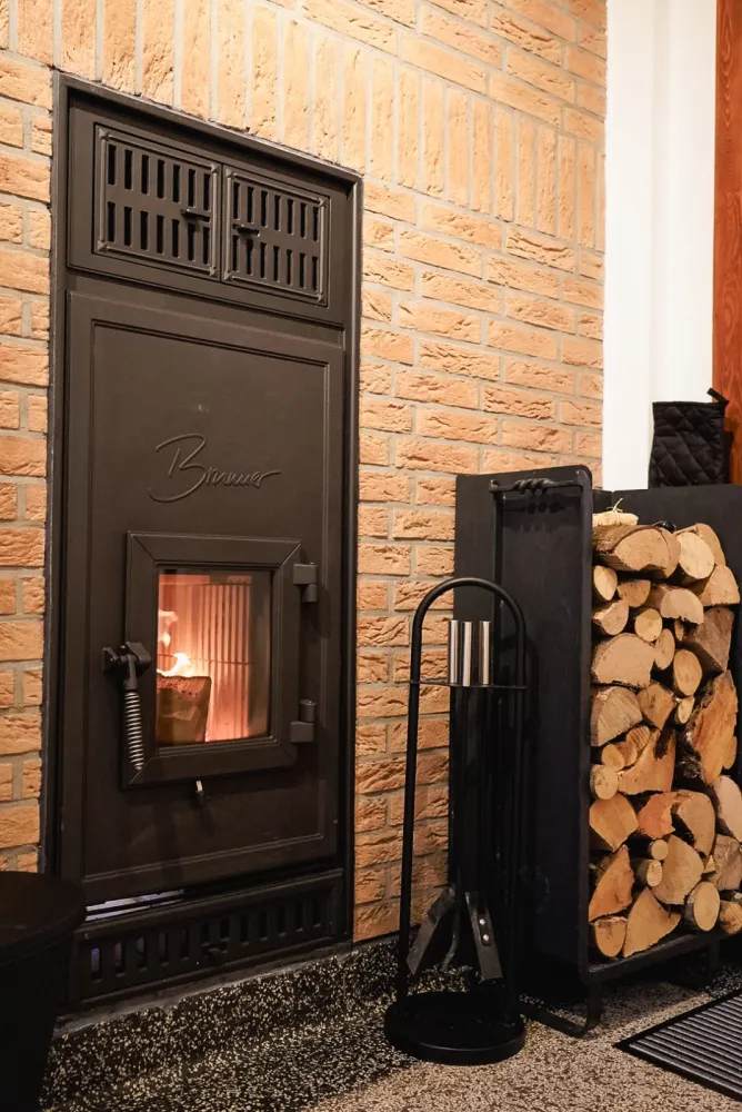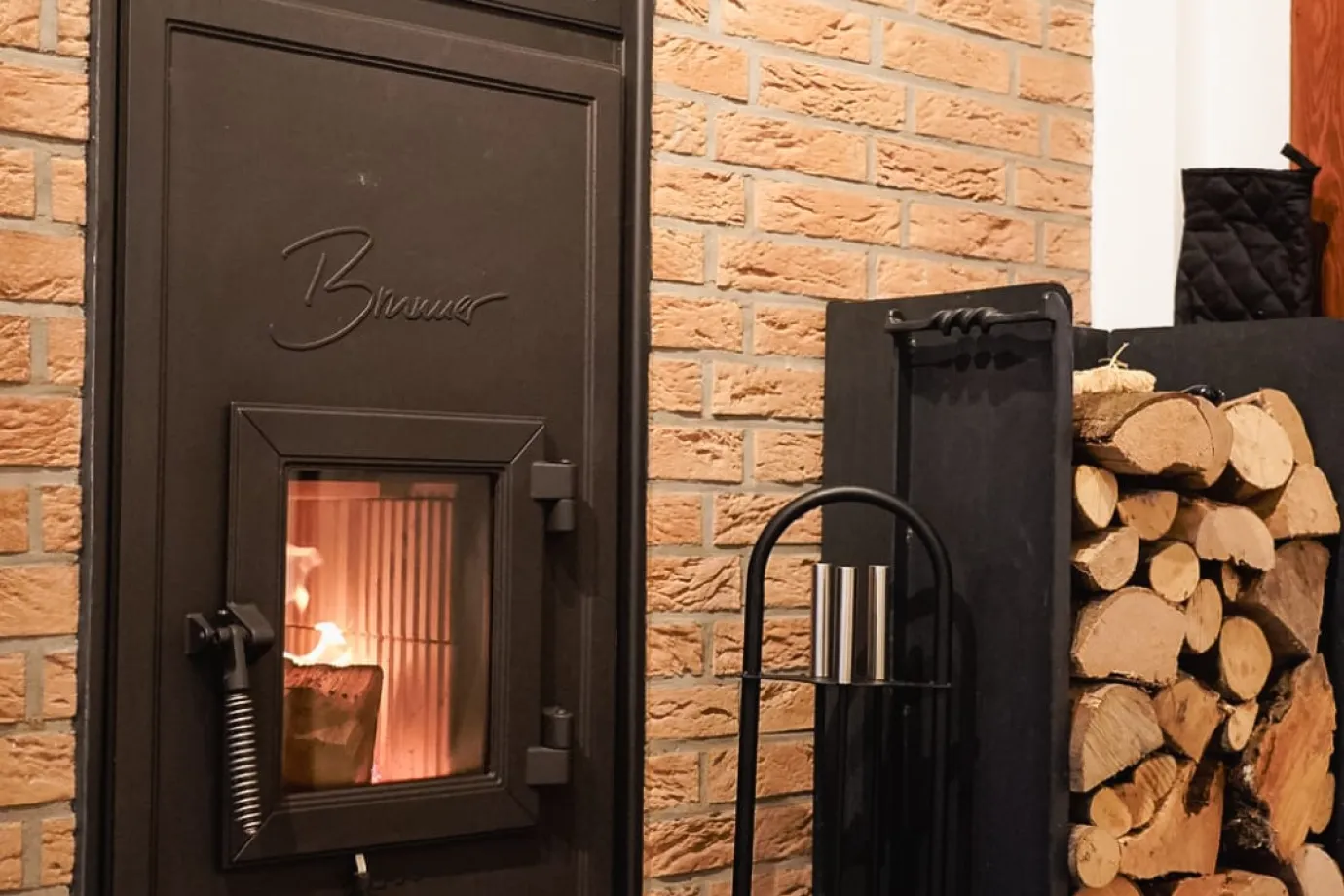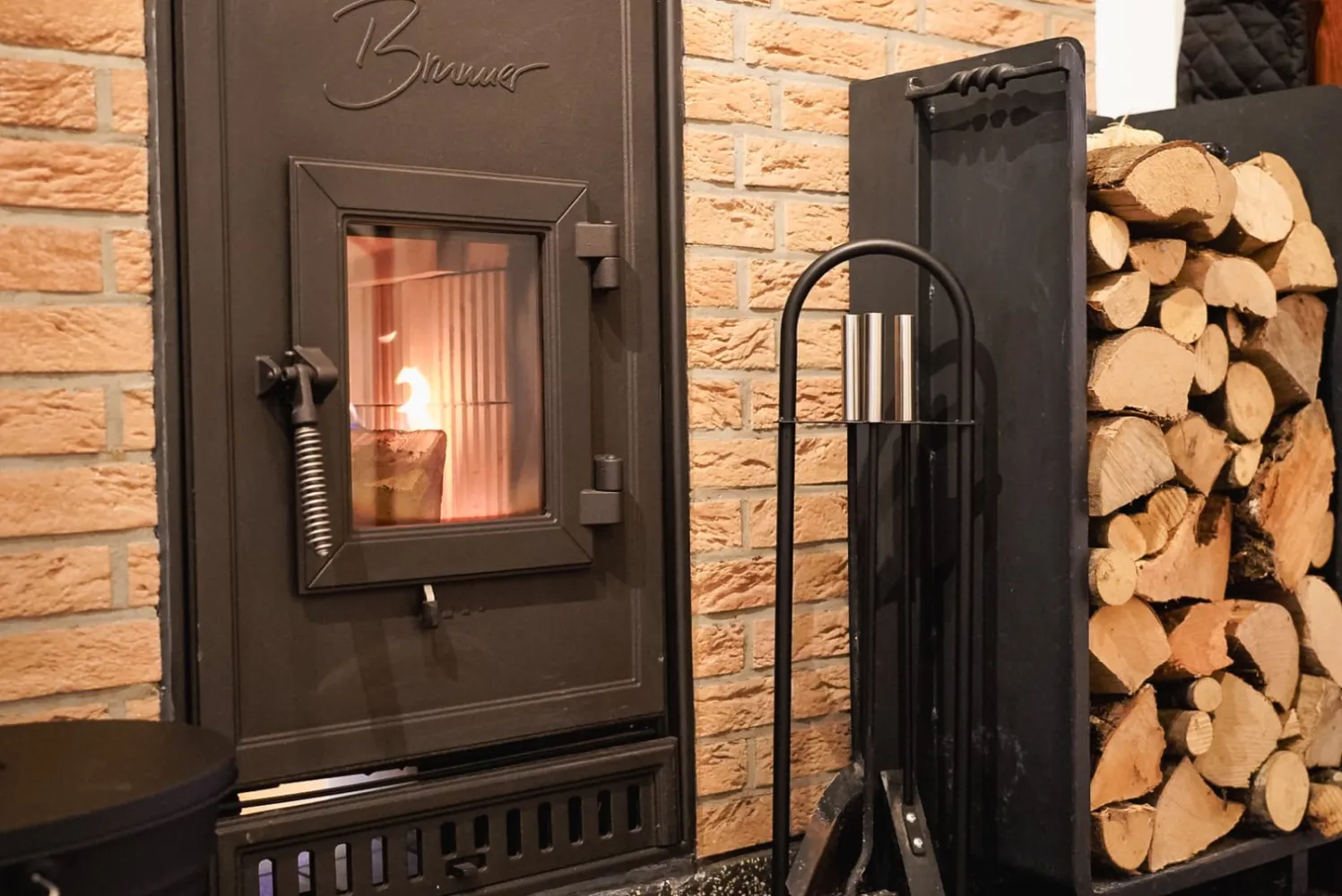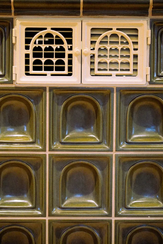 Der traditionelle Kachelofen verbreitet an kühleren Tagen eine besonders einladende Atmosphäre.