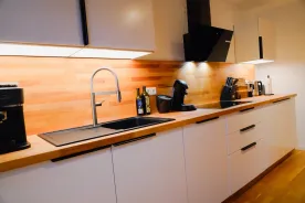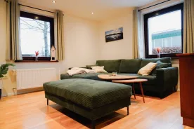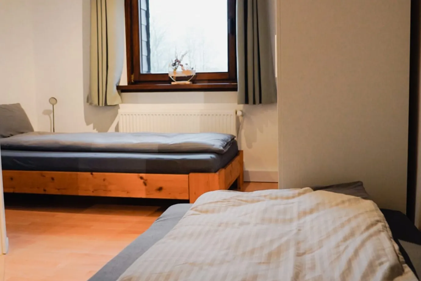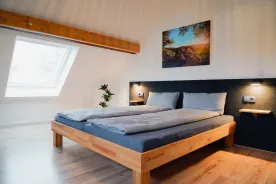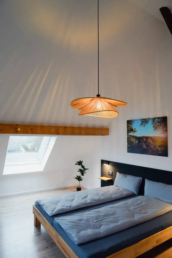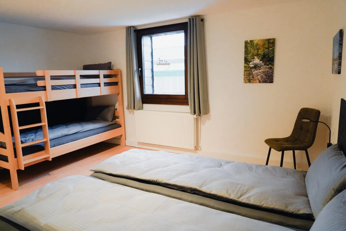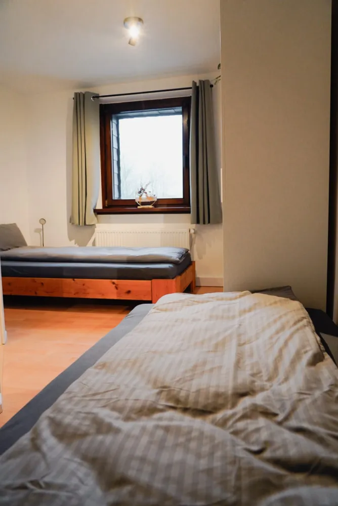 Vier gemütliche Schlafzimmer sorgen für erholsame Nächte: zwei Zimmer mit je einem Doppelbett, ein Zimmer mit zwei Einzelbetten sowie ein großes Familienzimmer mit Doppelbett und Etagenbett für zwei weitere Gäste. Für Person 11 und 12 steht zudem eine komfortable Schlafcouch im Wohnzimmer bereit. Auf Anfrage stellen wir gerne bis zu zwei Kinderbetten zur Verfügung.